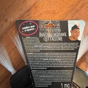 This item is a light up mohawk headband. It is battery operated and it's sold as a buy one get one set! It has 6 light modes! These items are new and in their original packaging.
