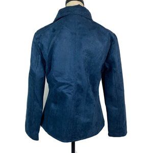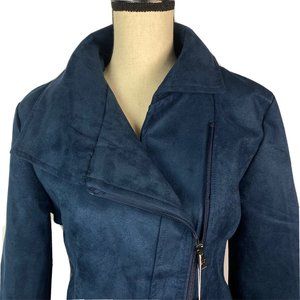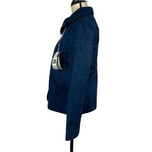 BV Clothing Italia Suede Leather Jacket Navy Blue Zip Up Womens M NWT
