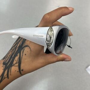 Good condition BVLGARI BV8017B Silver Glitter Crystal Jewel Special Oversized Sunglasses 8017 with case