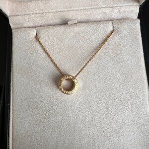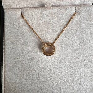 A timeless expression of BVLGARI’s bold aesthetic, the B.Zero1 necklace draws inspiration from the architectural lines of Rome’s Colosseum. This piece features a central spiral pendant crafted in gold with a sleek band of white ceramic, suspended from a fine gold chain. The pendant is engraved with the iconic “BVLGARI BVLGARI” logo for a signature finish.
