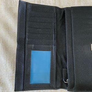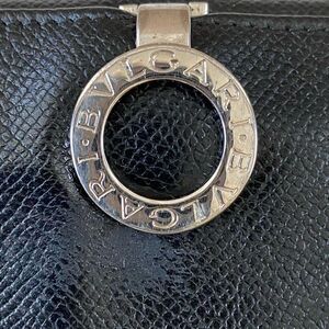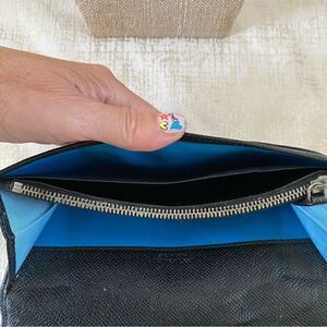 BVLGARI (Bulgari) Black Leather Long Wallet with Teal Blue Interior and Silver Hardware. 🚭Smoke free home🚭 🐶Pet free home🐈📦Fast Shipping📦