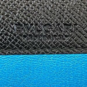 BVLGARI Black Leather Long Wallet with Teal Blue Interior and Silver Hardware.