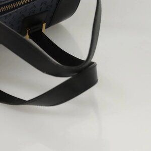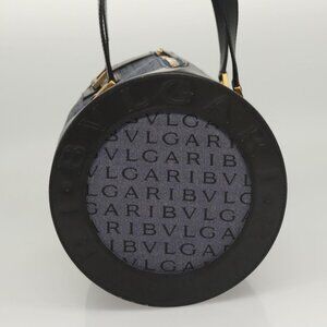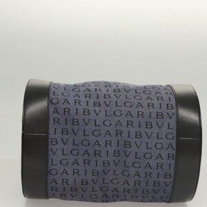 BVLGARI Hand Bag Canvas Navy Gold Auth 121454