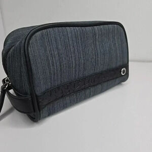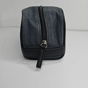 This black BVLGARI PARFUME Emirates First Class amenity travel tote is the perfect accessory for any fashion-conscious traveler. The zippered organizer provides ample space for all your essentials. Crafted with the utmost attention to detail, this wash/amenity bag is a must-have for anyone who wants to look and feel their best while on the go. This bag is a 2 toned black with a silver and black logo. Like new condition.