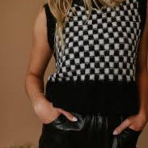 Black and white checkered sweater vest from Vestique. Super comfortable. Can layer or wear alone. Worn 2x (once for my birthday). No stains or signs of wear. It's such a cute top, I just don't see myself wearig it again. Size medium.
