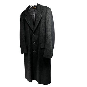 B.W. Harris Mens Vintage Designer Black Wool Button Up Lined Overcoat Jacket 44L Pockets. Made in the USA. Great Pre-Owned Vintage Condition Gently Worn. Ships from smoke free home.