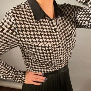 B&W Houndstooth Print Buttoned Down Shirt