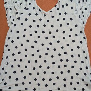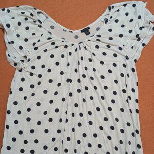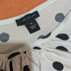 B&W Polka Dot Flutter-Sleeve Blouse, Ann Taylor, Sz Medium
