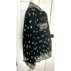 B&W Quacker Factory Black Handkerchief Print Beaded Embroidered Jacket Size S