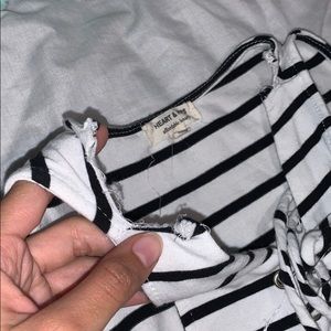 -torn straps on both sides but still wearable! (id always wear with a kimono) but you can also always fix it!