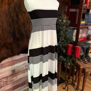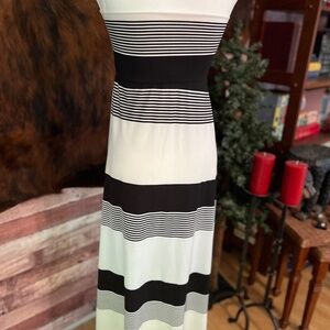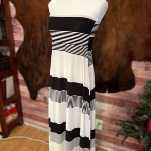 🖤🤍 Black & White Striped Sleeveless Sundress – Size M 🤍🖤