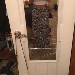 Tribal maxi skirt. 100% cotton. Super soft and comfortable! Feels like my fav pair of pj pants! It's a small but has a waste band that is made to fold up and down to adjust the length so can fit tall girls and stretchy material! Smoke free home!