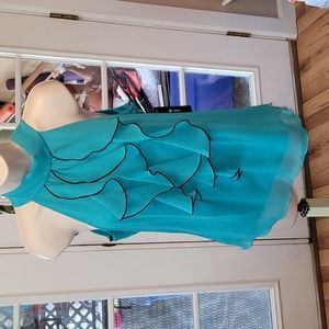 Turquoise colored sleeveless top top this ties in the back has a zipper on the side is super cute semi fitted. Size M. Pit to pit is 17" and length is 26"