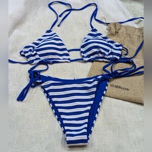 BWNT / Berlook / Small/ Medium / Navy Plush Texture Stripe Bikini Set