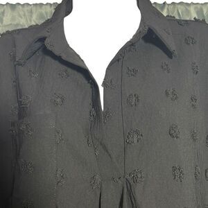 B Women's Polka Dot Mini Dress Tunic Roll Tab Sleeve Collared Black Size Medium