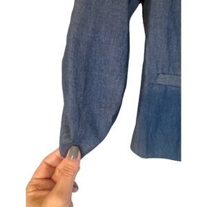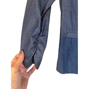 B-Works Blue Long Ruched Sleeves One Button Cotton Dress Jacket Women Sz M