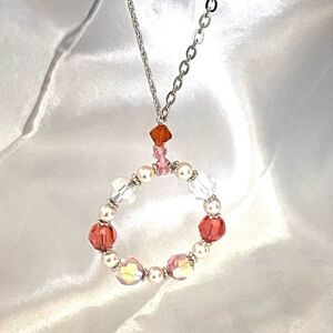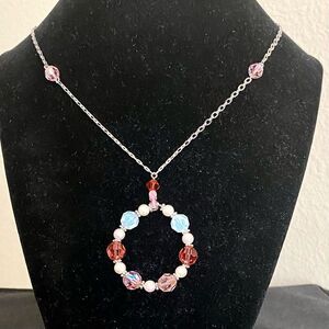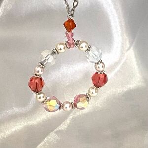 BX# This beautiful necklace is stamped Pearlmaid and 925 silver and is in excellent condition. This piece has a lovely 26 inch chain and the circle pendant is adorned with beautiful multi colored rhinestone crystals making this a great accessory to your look. This lovely needs a home. Let’s make it yours! 220401