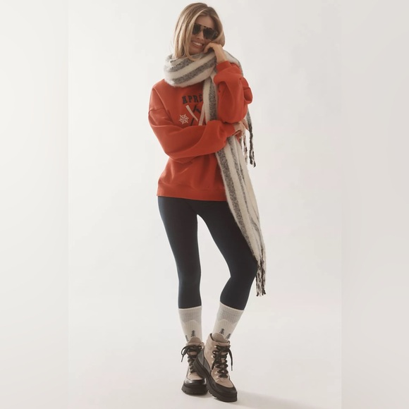 Cue the cozy: it's après all day with this brushed woven scarf featuring a vertical stripe design and fringed edges.