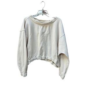 BY ANTHROPOLOGIE Boxy Cropped Pullover Oversized Size Medium Cream Crewneck