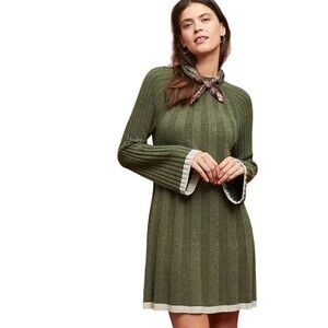 BY ANTHROPOLOGIE OB820787 Green Arsenau Sweater Dress Wool Alpaca SIZE SP SMALL PETITE