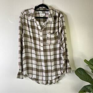 BY ANTHROPOLOGIE Isadora cream Plaid Flannel Button Top Women Size large