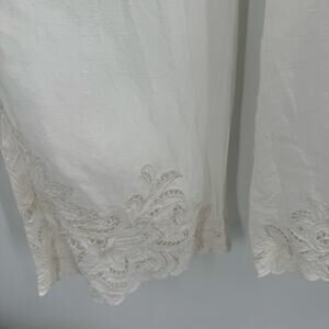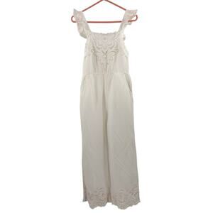 BY ANTHROPOLOGIE Jumpsuit Size Extra Small NWT Linen Blend Ivory Eyelet Floral Detail Cropped Wide Leg