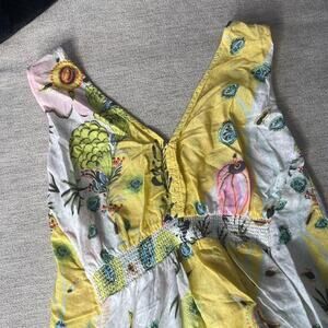 BY ANTHROPOLOGIE Medium Midi Dress Tiered Yellow Modal Ruffle Tie