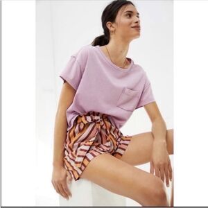 Adorable and comfy striped shorts by Anthropologie. 100% Cotton. Color is Red Motif - beige, orange, pink, brick red. Pockets. Sash style belt. Brand NWT. Women’s size extra large (xlarge, x-large).