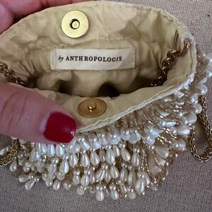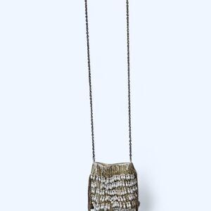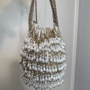 BY ANTHROPOLOGIE Pearl Fringe Bucket Bag In White Gold Glam Elegant mini handbag