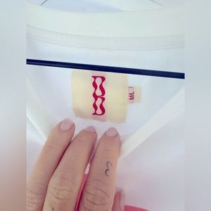 BY BILLIE Inhale/Exhale Oversized White Cotton Tee with Coral Graphic Size M/L
