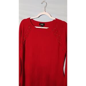 BY & BY Women's XL Knit Lace Up Long Sleeve Sweater Dress Red Acrylic NWT