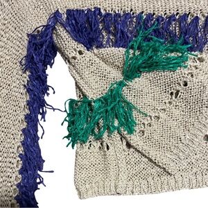 BY CHANCE • Beige Knit Green & Purple Tassels Fringe Sweater