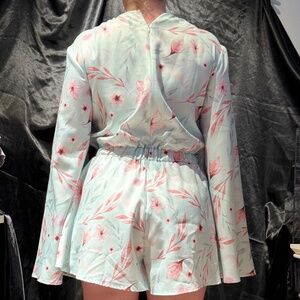 BY EGREIS LIGHT BLUE ROMPER WITH FLORAL DETAIL