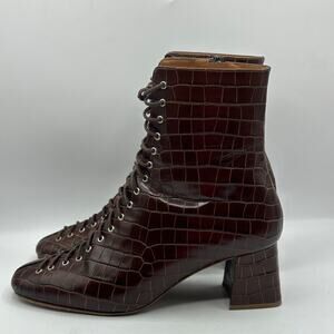 BY FAR Becca Croc Embossed Leather Lace Up Boots Nutella Croco Brown Sz 41 / 11