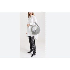 BY FAR Maxi Cush 100% cowhide leather large shoulder bag + Dust bag CEMENT SUEDE