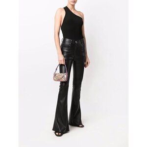 Playing with proportions, BY FAR reintroduced its iconic shape into a compact mini version. The top-handled bag stands out for its sleek lines and custom chain, inspired by vintage jewelry. Made of luscious hologram leather.