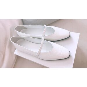 BY FAR Molly Maxi Croco Embossed ballet Leather Flat white 40