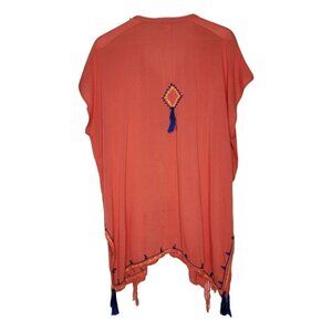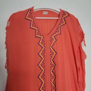 BY THE SEA Gipsy Embroidered Boho Fringe Kaftan Tunic Cover-Up One Size Festival