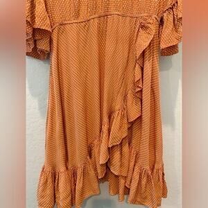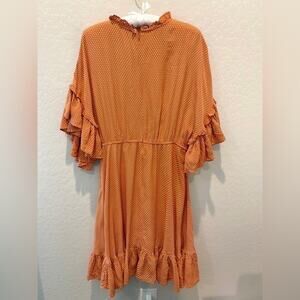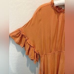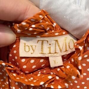 BY TIMO | Orange Polka Dot Ruffle Midi Dress Boho Romantic Style | Size Large