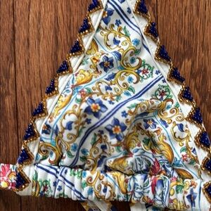 Used BYDEE bikini. Size small. Features a mix of colors including blue and cream.