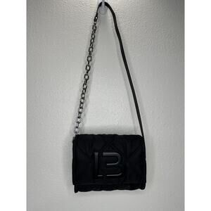 Bimba Y Lola Small Black Padded Nylon Crossbody Bag Leather & Chain Strap with Flap