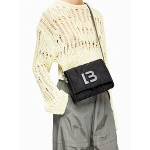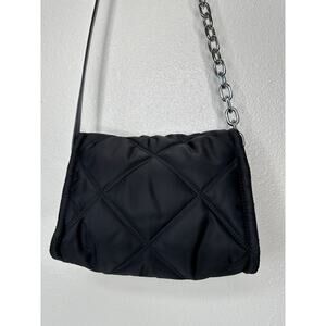 BYL Small Black Padded Nylon Crossbody Bag Leather & Chain Strap