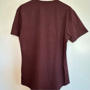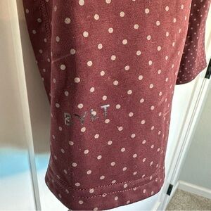 BYLT Basics Drop Cut Lux Short Sleeve Shirt Large maroon white polka dot Stretch