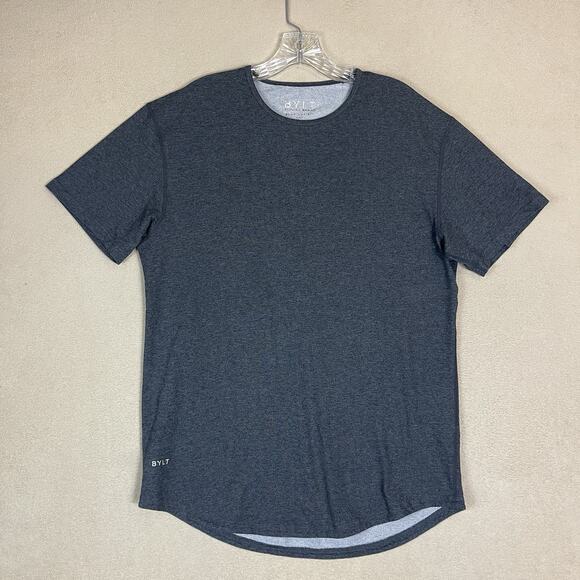 BYLT Basics Shirt Mens L Gray Drop Cut Short Sleeve Stretch Performance Tee