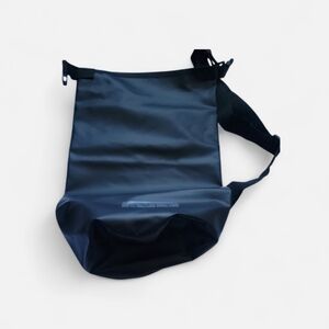 Stylish navy duffel bag. Ideal for travel and gym. Durable and versatile.