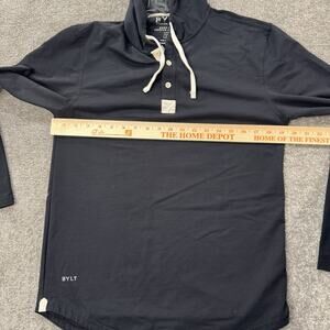 BYLT Drop Cut Hooded Henley Mens Medium Black Long Sleeve Stretch Drawstring Lux