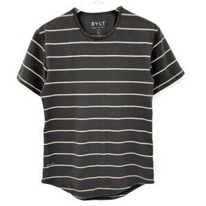 BYLT Drop Cut Short Sleeve Lux Size S T-Shirt Curved Hem Striped Gray Athletic