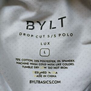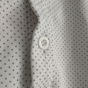 BYLT Drop Cut Short Sleeve Polo Shirt Mens L White Gray Swiss Dots Stretch