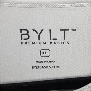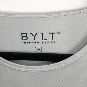 BYLT Drop-Cut Performance Tee Men’s 2XL Silver Athletic Fit Stretch Minimalist