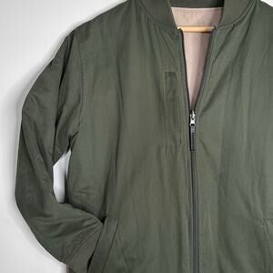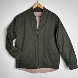 BYLT Hi Lo Reversible Bomber Jacket Mens L Sand & Dark Olive Full Zip Pockets